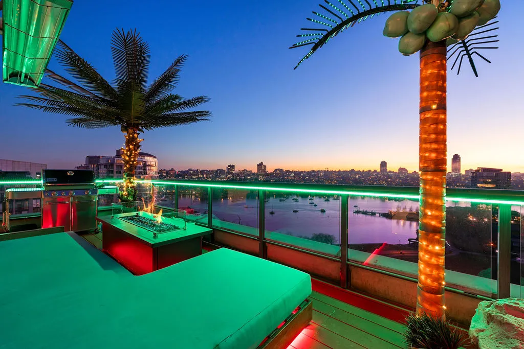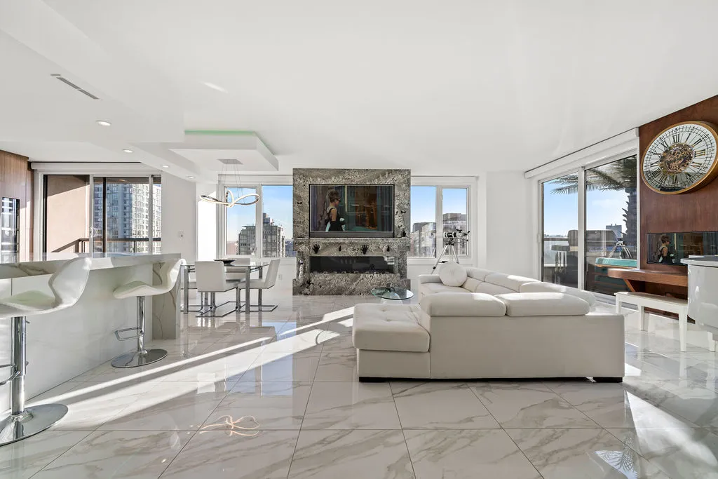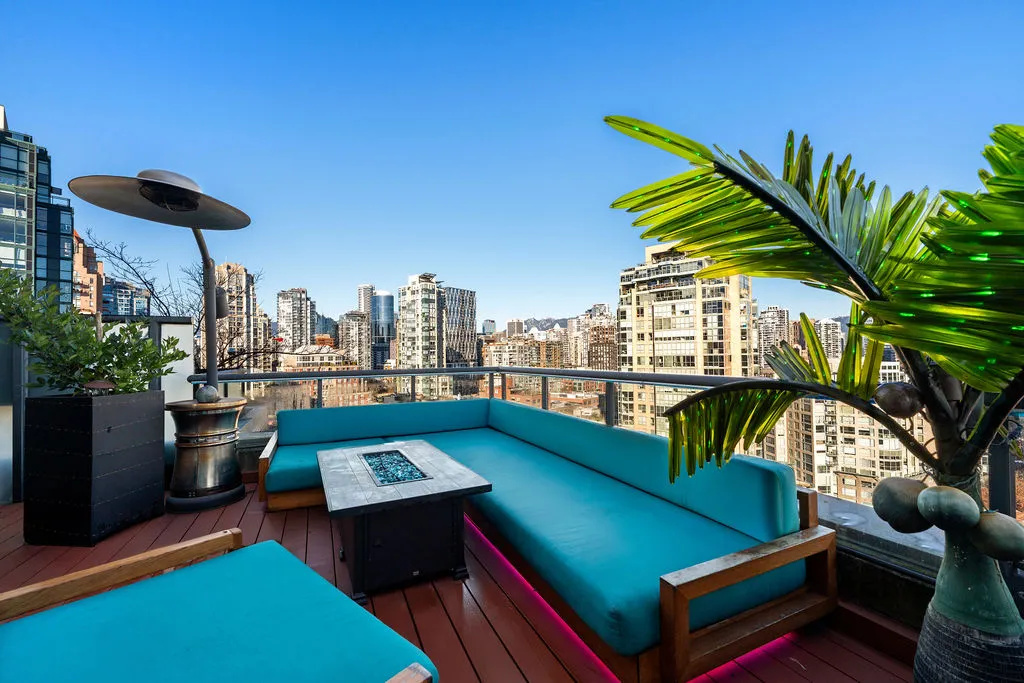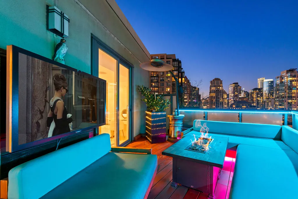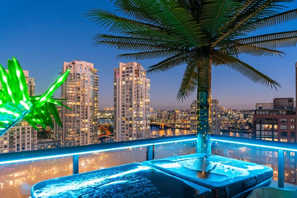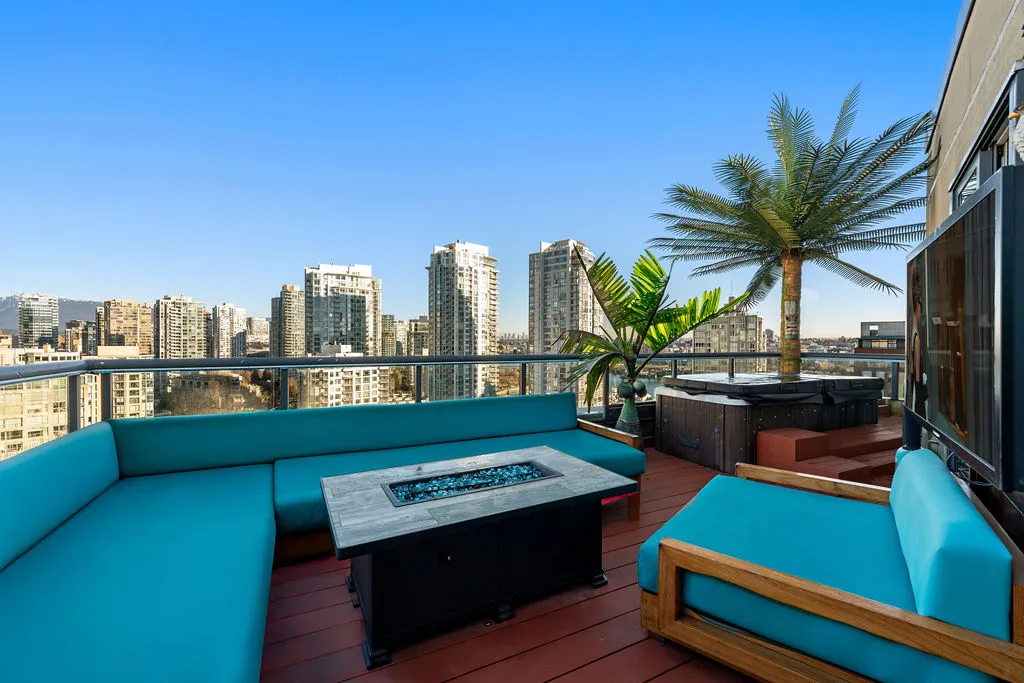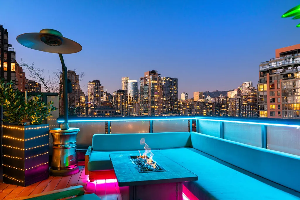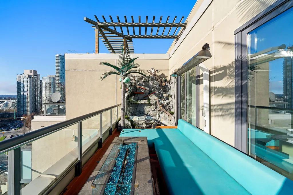 Welcome to a truly exceptional trophy penthouse offering some of the most breathtaking views in all of Yaletown. Perfectly positioned at the water’s edge and in the heart of it all, this 2,000 sq ft residence was completely redesigned in 2023 and reimagined to the highest standard of luxury living. Bathed in natural light, the home showcases panoramic 270-degree views spanning Downtown Vancouver, David Lam Park, and False Creek. Seamless indoor-outdoor living is achieved with over 600 sq ft of sun-drenched, stair-free deck space, accessible from every room. Four expansive patios—finished with IPE and teak decking—create an unparalleled setting for entertaining or quiet moments above the city. Inside, refined elegance meets modern comfort. The residence features over-height ceilings, marble throughout, and automated roller shades, creating a calm and sophisticated atmosphere. The chef’s kitchen is anchored by a massive marble island and equipped with top-of-the-line appliances, ideal for both everyday living and hosting at scale. Luxury amenities abound, including natural gas fireplace, two fire pits, waterfall feature, a private hot tub, outdoor waterproof TV, BBQ, and a fully integrated Savant smart home system, all controlled effortlessly from your phone. Additional highlights include an in-suite washer and dryer, five TVs, a 250-gallon professionally serviced tropical aquarium, and a grand piano—whether you choose to play it yourself or let it perform for you. This is more than a penthouse—it is a statement home, a private retreat, and a front-row seat to Vancouver’s most iconic views.