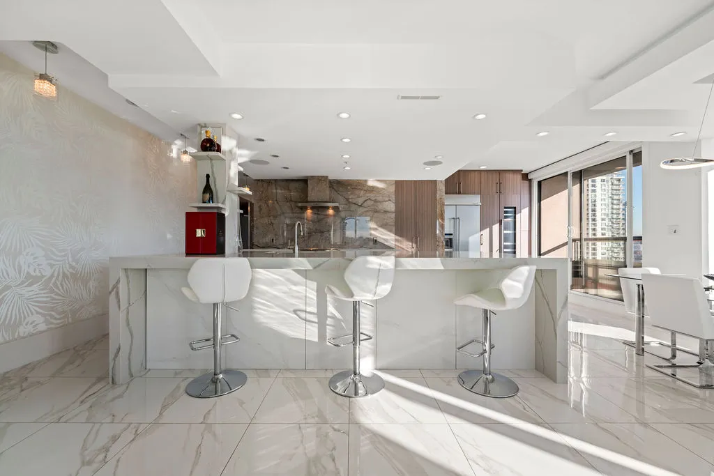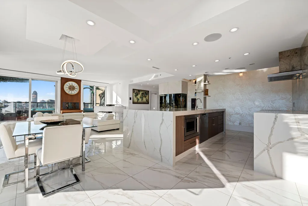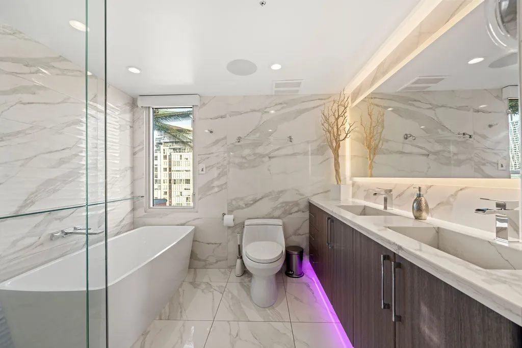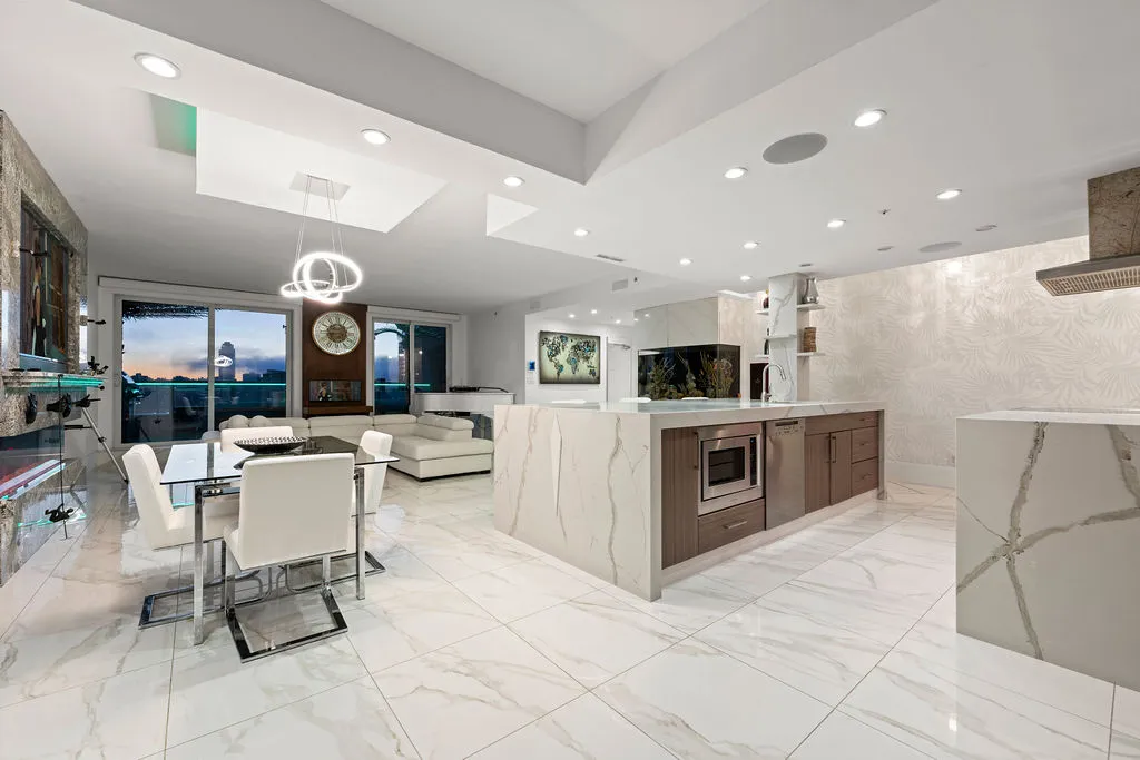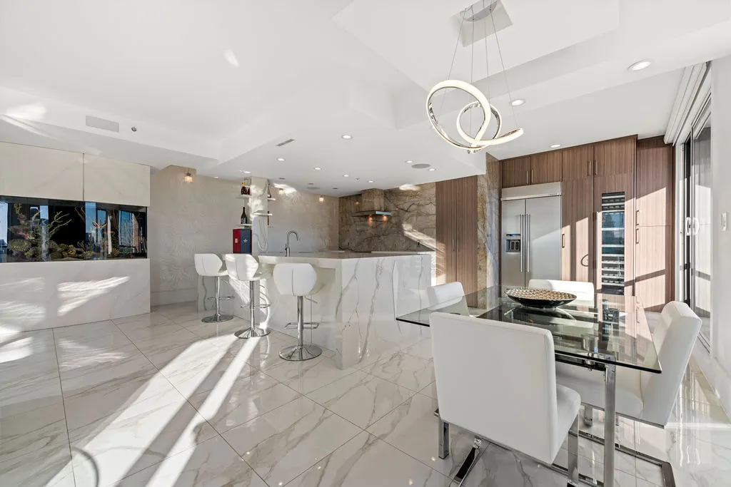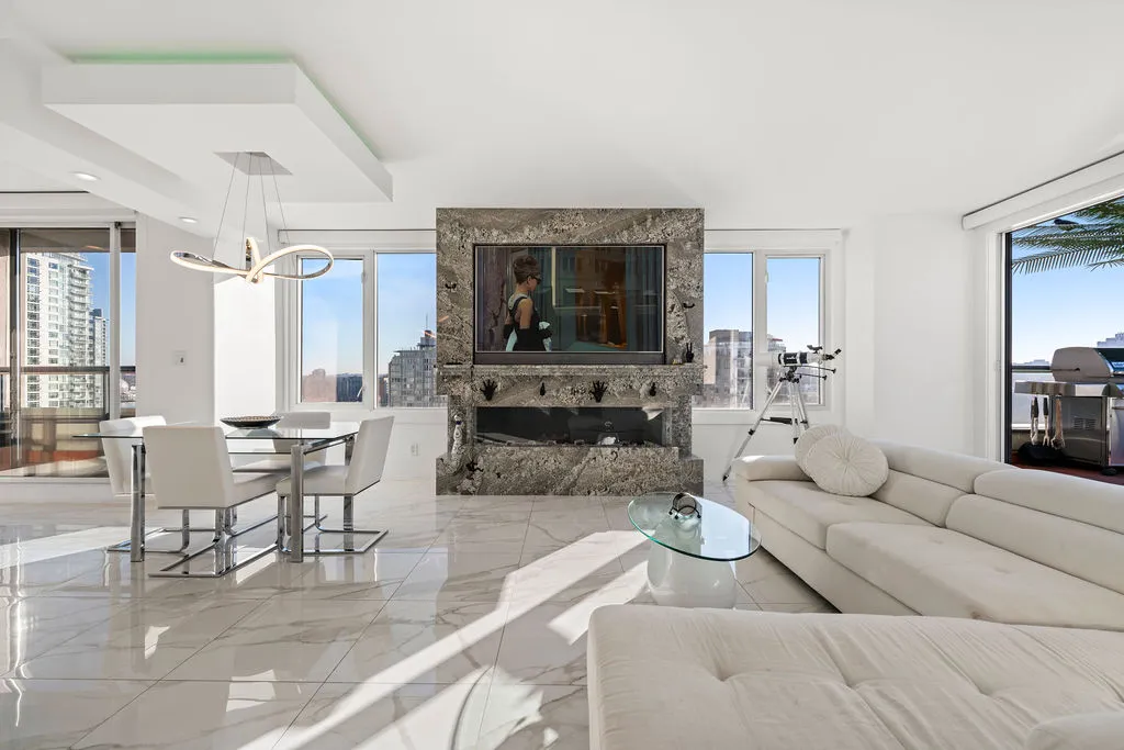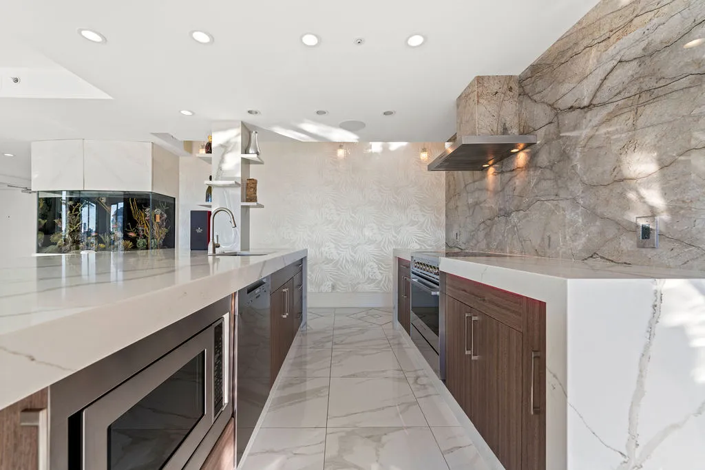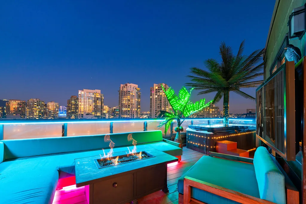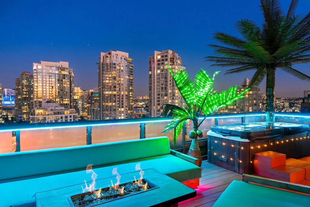 Welcome to a truly exceptional trophy penthouse offering some of the most breathtaking views in all of Yaletown. Perfectly positioned at the water’s edge and in the heart of it all, this 2,000 sq ft residence was completely redesigned in 2023 and reimagined to the highest standard of luxury living. Bathed in natural light, the home showcases panoramic 270-degree views spanning Downtown Vancouver, David Lam Park, and False Creek. Seamless indoor-outdoor living is achieved with over 600 sq ft of sun-drenched, stair-free deck space, accessible from every room. Four expansive patios—finished with IPE and teak decking—create an unparalleled setting for entertaining or quiet moments above the city. Inside, refined elegance meets modern comfort. The residence features over-height ceilings, marble throughout, and automated roller shades, creating a calm and sophisticated atmosphere. The chef’s kitchen is anchored by a massive marble island and equipped with top-of-the-line appliances, ideal for both everyday living and hosting at scale. Luxury amenities abound, including natural gas fireplace, two fire pits, waterfall feature, a private hot tub, outdoor waterproof TV, BBQ, and a fully integrated Savant smart home system, all controlled effortlessly from your phone. Additional highlights include an in-suite washer and dryer, five TVs, a 250-gallon professionally serviced tropical aquarium, and a grand piano—whether you choose to play it yourself or let it perform for you. This is more than a penthouse—it is a statement home, a private retreat, and a front-row seat to Vancouver’s most iconic views.