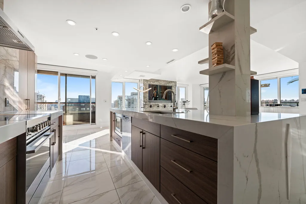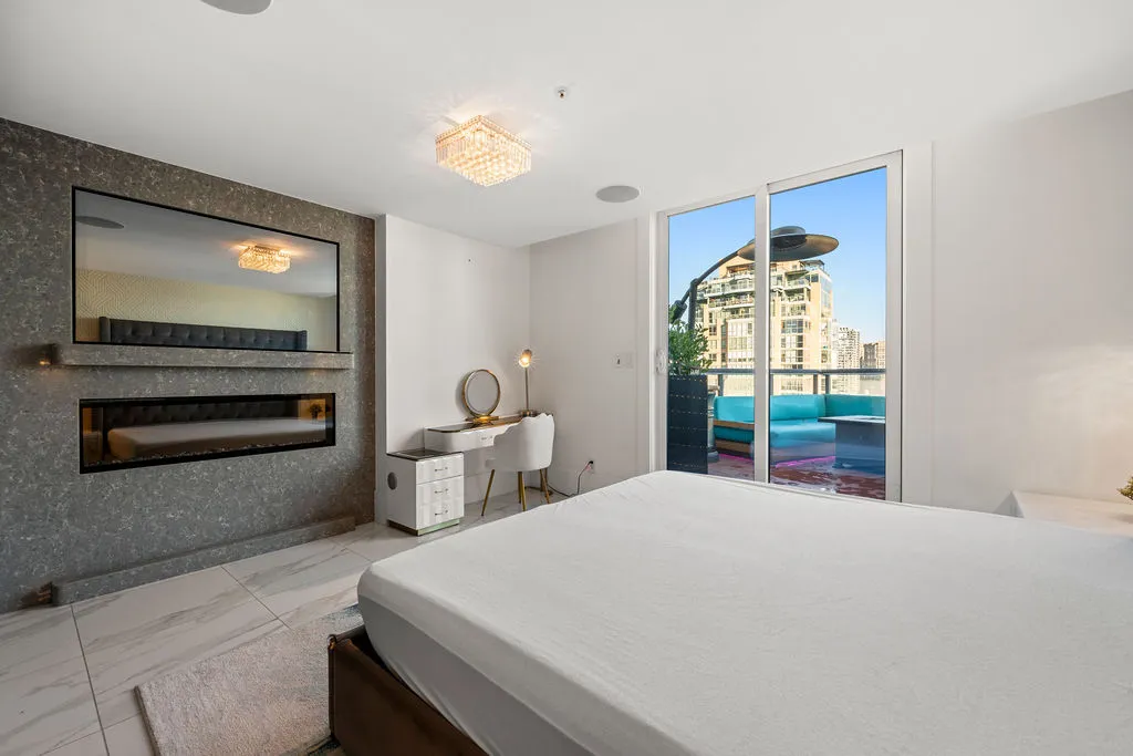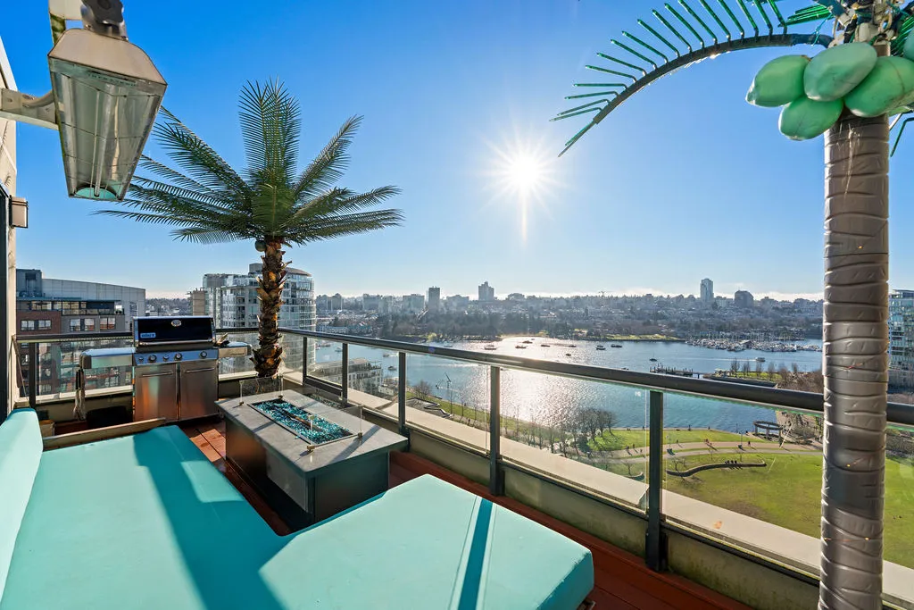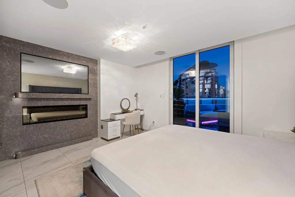 Welcome to a truly exceptional trophy penthouse offering some of the most breathtaking views in all of Yaletown. Perfectly positioned at the water’s edge and in the heart of it all, this 2,000 sq ft residence was completely redesigned in 2023 and reimagined to the highest standard of luxury living. Bathed in natural light, the home showcases panoramic 270-degree views spanning Downtown Vancouver, David Lam Park, and False Creek. Seamless indoor-outdoor living is achieved with over 600 sq ft of sun-drenched, stair-free deck space, accessible from every room. Four expansive patios—finished with IPE and teak decking—create an unparalleled setting for entertaining or quiet moments above the city. Inside, refined elegance meets modern comfort. The residence features over-height ceilings, marble throughout, and automated roller shades, creating a calm and sophisticated atmosphere. The chef’s kitchen is anchored by a massive marble island and equipped with top-of-the-line appliances, ideal for both everyday living and hosting at scale. Luxury amenities abound, including natural gas fireplace, two fire pits, waterfall feature, a private hot tub, outdoor waterproof TV, BBQ, and a fully integrated Savant smart home system, all controlled effortlessly from your phone. Additional highlights include an in-suite washer and dryer, five TVs, a 250-gallon professionally serviced tropical aquarium, and a grand piano—whether you choose to play it yourself or let it perform for you. This is more than a penthouse—it is a statement home, a private retreat, and a front-row seat to Vancouver’s most iconic views.
