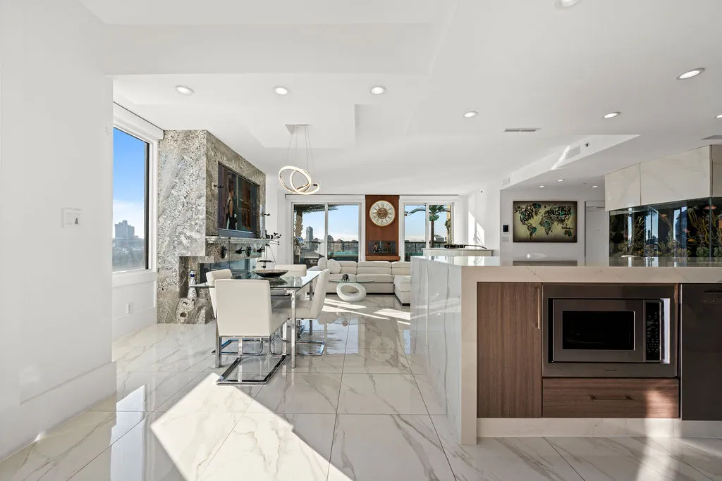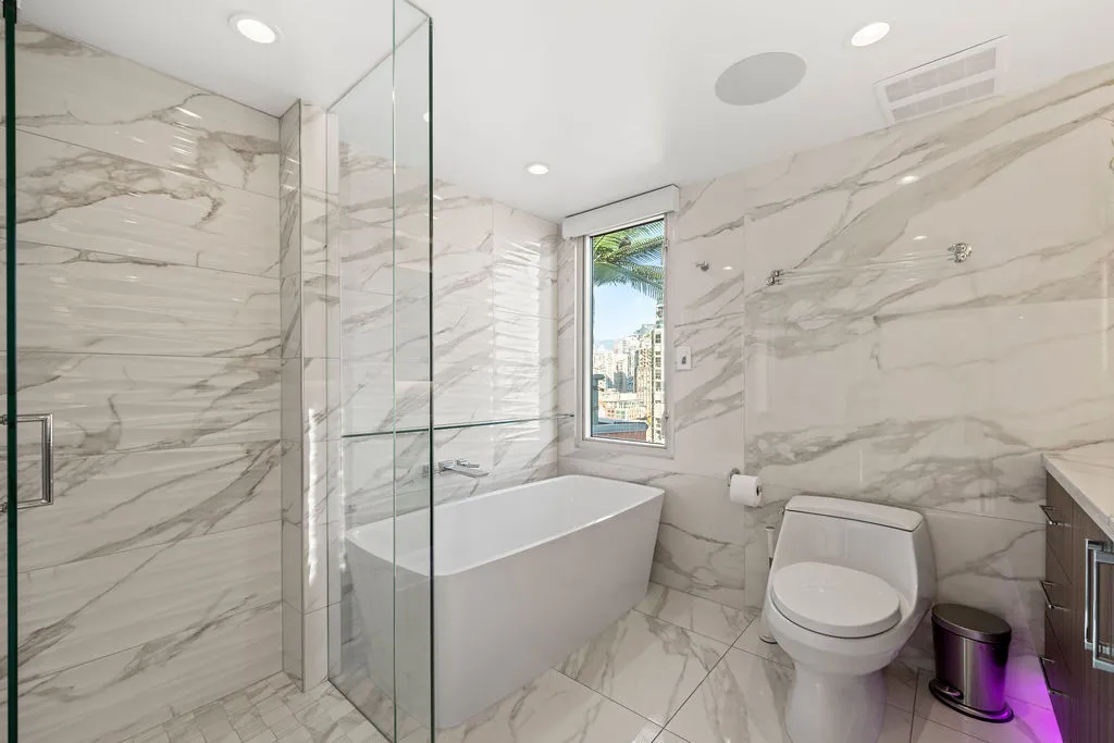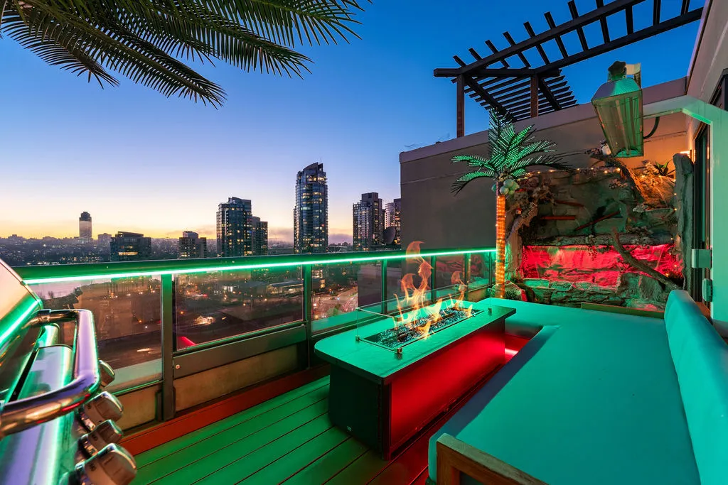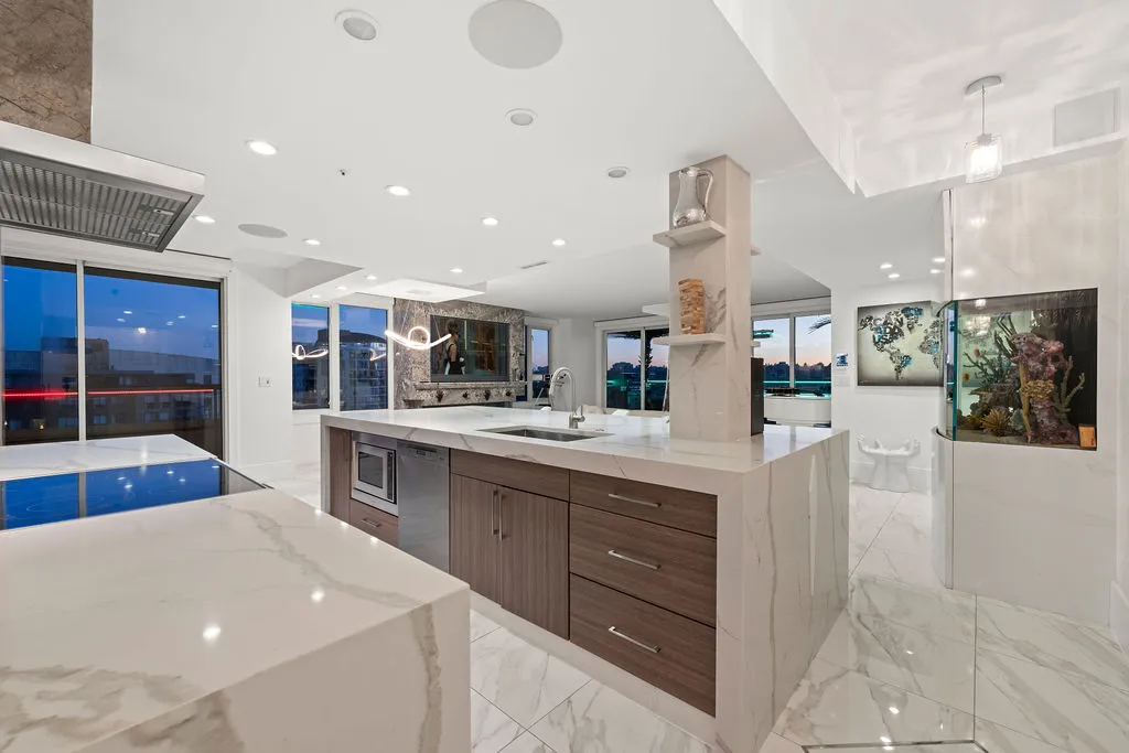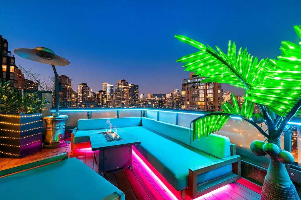 Welcome to a truly exceptional trophy penthouse offering some of the most breathtaking views in all of Yaletown. Perfectly positioned at the water’s edge and in the heart of it all, this 2,000 sq ft residence was completely redesigned in 2023 and reimagined to the highest standard of luxury living. Bathed in natural light, the home showcases panoramic 270-degree views spanning Downtown Vancouver, David Lam Park, and False Creek. Seamless indoor-outdoor living is achieved with over 600 sq ft of sun-drenched, stair-free deck space, accessible from every room. Four expansive patios—finished with IPE and teak decking—create an unparalleled setting for entertaining or quiet moments above the city. Inside, refined elegance meets modern comfort. The residence features over-height ceilings, marble throughout, and automated roller shades, creating a calm and sophisticated atmosphere. The chef’s kitchen is anchored by a massive marble island and equipped with top-of-the-line appliances, ideal for both everyday living and hosting at scale. Luxury amenities abound, including natural gas fireplace, two fire pits, waterfall feature, a private hot tub, outdoor waterproof TV, BBQ, and a fully integrated Savant smart home system, all controlled effortlessly from your phone. Additional highlights include an in-suite washer and dryer, five TVs, a 250-gallon professionally serviced tropical aquarium, and a grand piano—whether you choose to play it yourself or let it perform for you. This is more than a penthouse—it is a statement home, a private retreat, and a front-row seat to Vancouver’s most iconic views.