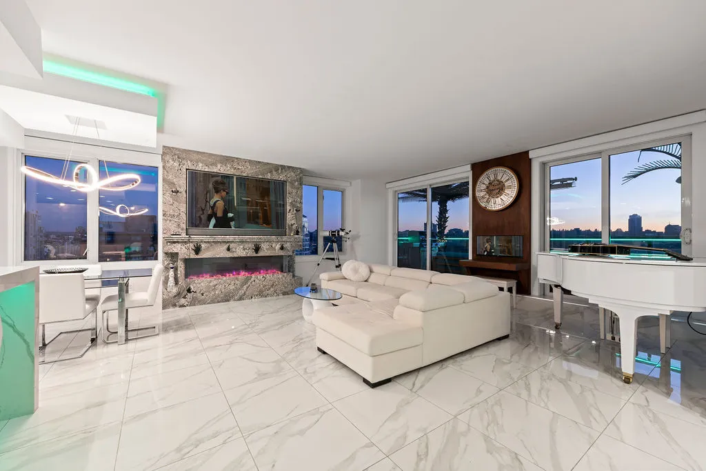 Trophy Yaletown penthouse featuring panoramic 270° views, over-height ceilings, marble throughout, 4 sunny patios, and top-of-the-line finishes.